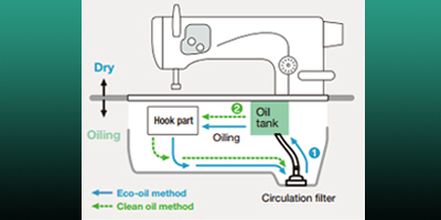 Dos mecanismos de engrase nueva de métodos seleccionables. únicos para JUKI