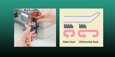 El pequeño cilindro-cama y semi-seco características de la cabeza se han alcanzado, mientras que dando prioridad a la facilidad de uso. La máquina de coser apoya cómodo trabajo "costura". La circunferencia exterior de la sección de cilindro se ha reducido a 176 mm. Esto al mínimos de la máquina de coser para coser ly easi convento ly ional difíciles de coser todo en diámetro piezas tubulares como los puños de ropa deportiva y ropa de corte y cosido de las señoras y los escotes de moda infantil.