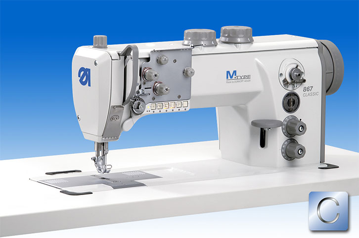 Pespunte máquina plana de una sola aguja con arrastre inferior, por aguja y superior alternante y una longitud máxima de puntada de 12 mm. El 867-190322 CLASSIC está equipada con elevación automática de costura del pie, un segundo largo de puntada integrado, una tensión integrado segundo hilo, ajuste de la carrera rápida, rematador automático, cortahilos, luz de aviso de nivel de aceite y un gancho vertical de gran tamaño. Con la serie M-TYPE visión se ha hecho realidad - una plataforma para maquinaria pesada mediano creando una nueva dimensión de funcionalidad y flexibilidad para todo tipo de aplicaciones de peso medio. La cama plana clase de máquina pespunte 867, el primer modelo de la serie M-TYPE, establecerá nuevos estándares. Por encima de todo, el diseño moderno permite una holgura ampliada bajo el brazo, así como una mejor visión sobre el área de costura. Los parámetros de coser altamente eficientes combinados con una gran variedad de equipos hacen que el 867 significa un funcionamiento ideal para uso universal.