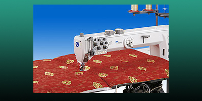 Operaciones de costura en piezas de gran tamaño, voluminosos y tapicería acolchada de vivienda requieren de la utilización de máquinas Longarm con gran holgura, de gran alcance de alimentación del material y la longitud de la puntada larga. Las robustas máquinas Longarm pespunte ofrecen condiciones ideales para estas tareas. Con el fin de contrarrestar el cambio de bobina frecuente y costosa al procesar piezas de trabajo de gran tamaño la 867-190342-70 está equipado con un gancho de XXL-.