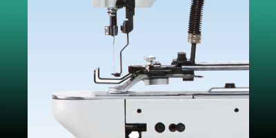 • Con seguridad de inicio de costura con aguja sujetador de hilo por debajo de la placa de la aguja